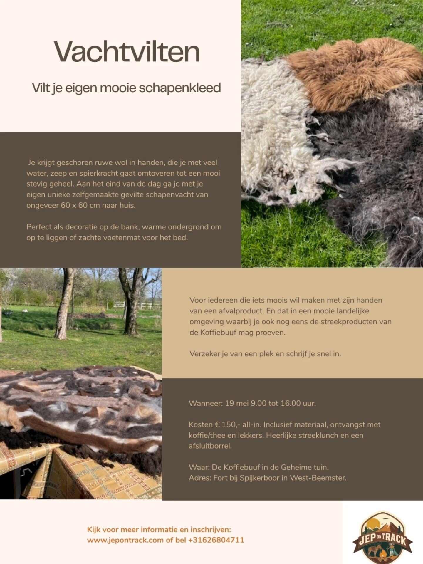 19 mei Cursus🐑 Vilt je eigen schapenvacht